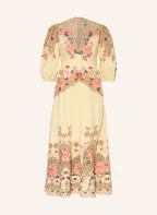 FARM RIO Kleid mit Leinen und Lochspitze: CREME / HELLROT / DUNKELBLAU