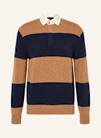 PAUL & SHARK Strick-Rugbyshirt: DUNKELBLAU / COGNAC