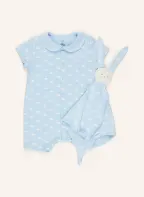 PETIT BATEAU Set: Body und Schmusetuch: HELLBLAU / WEISS