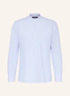 STROKESMAN'S Hemd Regular Fit mit Leinen und Stehkragen: HELLBLAU / WEISS