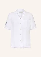 FRESCOBOL CARIOCA ALVES Comfort Fit Linen Resort Shirt: WHITE / BROWN