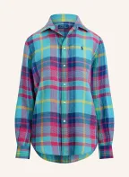 POLO RALPH LAUREN Linen shirt blouse: TURQUOISE / DARK RED / DARK BLUE