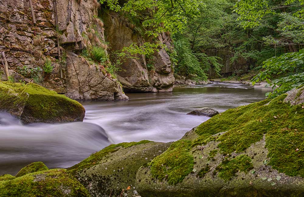 Es ist nicht die Anstrengung des Wanderns, sondern die Schönheit des mächtigen Felsentals, das den Wanderern den Atem raubt: Steil schiessen Granitwände in den Himmel, während sich die Wurzeln von Eiben, Buchen und Fichten fest an die Felsen klammern. Je weiter man sich nun fortbewegt, desto dichter rücken Talränder zusammen und desto steiler wachsen Felsenwände in die Höhe. Bänke am Wegesrand laden zu kleinen Ruhepausen ein, bevor es über die Teufelsbrücke weitergeht. Ehe der Zielort Thale erreicht ist, sollte man unbedingt einen Abstecher zum Rosstrappen-Felsen oder zum Hexentanzplatz unternehmen, da beide mit einzigartigen Ausblicken belohnen.