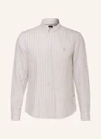 BOSS Chemise en lin LIAM coupe classique: BEIGE / BLANC