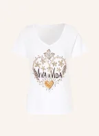 Grace T-shirt à paillettes: ÉCRU / OR / MARRON FONCÉ