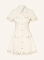 self-portrait Robe en jean avec dentelle ajourée et pierres décoratives: CRÈME