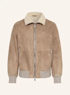 BRUNELLO CUCINELLI Lederblouson im Materialmix: CAMEL