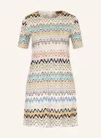 MISSONI Strickkleid: BEIGE / PETROL / SCHWARZ