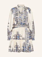 NEO NOIR Satinkleid MALFIDA mit Rüschen: ECRU / BLAU