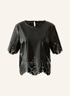oui Blusenshirt in Lederoptik: SCHWARZ