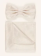 Prince BOWTIE Set: Fliege und Einstecktuch: CREME / GRAU / WEISS