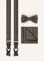 Prince BOWTIE Set: Hosenträger, Fliege und Einstecktuch: HELLBRAUN / BRAUN / GRAU