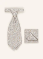 WILVORST Set: Krawatte und Einstecktuch: BEIGE / GRAU