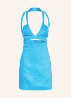 GAUGE81 Koktejlové šaty GUYRA se lnem a průstřihy: NEONOVĚ MODRÁ