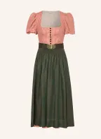 Gottseidank Dirndl LAURA z lnu: ČERVENÁ / KRÉMOVÁ / TMAVĚ ZELENÁ
