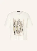 monari Tričko s ozdobnými kameny: BÍLÁ / ČERNOŠEDÁ / TMAVĚ ŽLUTÁ