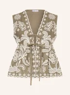 MRS & HUGS Blůza s lnem: OLIVOVÁ / BÍLÁ