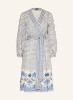 van Laack Lněné šaty VL-KENISHA-PX2 s překříženým výstřihem: BÍLÁ / TMAVĚ MODRÁ / MODRÁ