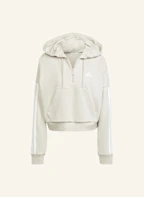 adidas ESSENTIALS 3-STREIFEN FRENCH TERRY QUARTER-ZIP HOODIE: BEIGE/ WEISS
