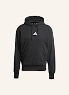 adidas ESSENTIALS FEELCOZY FRENCH TERRY HOODIE: SCHWARZ/ WEISS