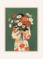 Wandbild BLUMEN AUF GRÜN mit Rahmen