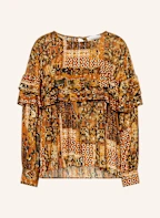 ba&sh Blusenshit PIXIE mit Glitzergarn und Volants: DUNKELGELB / GRÜN / BRAUN
