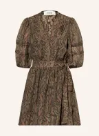ba&sh Wickelkleid TEODORA mit 3/4-Arm: DUNKELBRAUN / PINK / KHAKI