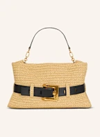 BALMAIN Mittelgroße Anthem Tasche aus gehäkeltem Stoff und Glattleder: KHAKI