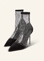 Netz-Stiefeletten mit Absatz, Velours und Strass