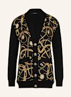 BALMAIN Strickjacke im Materialmix mit Seide: SCHWARZ / WEISS / GOLD