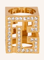 BALMAIN Würfel-Ring mit Strass und 3D-PB: SILBER
