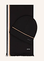 BOSS Set HENZO: Schal und Mütze: SCHWARZ / WEISS / CAMEL