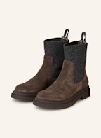 BRUNELLO CUCINELLI Chelsea-Boots mit Schmucksteinen: DUNKELBRAUN/ DUNKELGRAU