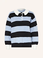 CLAUDIE PIERLOT Strick-Poloshirt: DUNKELBLAU / HELLBLAU / WEISS