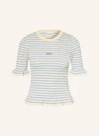 CLAUDIE PIERLOT T-Shirt mit Rüschen: CREME / ROT / HELLBLAU