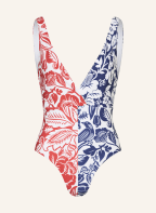 FARM RIO Badeanzug CASHEW AND BIRDS in Wickeloptik: ROT / DUNKELBLAU / WEISS