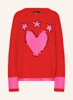 Grace Pullover mit Pailletten: ROT / NEONPINK
