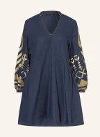 Greek Archaic Kori Strandkleid FEATHER aus Leinen: DUNKELBLAU / GOLD