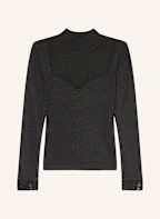 GUESS Lonsgsleeve mit Mesh und Schmucksteinen: SCHWARZ
