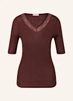 HANRO T-Shirt WOOLEN LACE aus Merinowolle mit Seide: DUNKELBRAUN