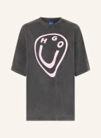 HUGO Oversized-Shirt: DUNKELGRAU / ROSA