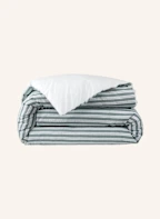 Die Bettwäsche L SEERLINE von Lacoste aus 100% biologischer Baumwolle interpretiert den klassischen Streifen neu und verbindet ihn mit der eleganten Leichtigkeit eines raffinierten Seersuckers. Die Vorderseite der Bettwäsche besteht aus stückgefärbtem Seersucker, belebt durch feine weiße Streifen und eine dezente, reliefartige Struktur. Die Rückseite sorgt für ein angenehm glattes und frisches Gefühl auf der Haut. Die Kombination aus technischer Raffinesse und Komfort verkörpert den typischen sportlich-lässigen Chic von Lacoste. Ein zeitloses Design mit moderner und klarer Ästhetik – ideal für ein elegantes Schlafzimmerambiente.