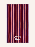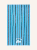 Dieses gestreifte Strandtuch L Sunstripe von Lacoste begeistert mit seiner raffinierten Jacquard-Bouclé-Struktur, die ihm eine elegante Textur verleiht. Ein schlichter Canvas-Saum sorgt für ein hochwertiges Finish. Hergestellt aus 100 % biologischer Baumwolle ist es zugleich sanft zur Haut und besonders saugfähig. Das ikonische Lacoste-Logo rundet das Design stilvoll ab. Der perfekte Begleiter für Strand, Pool und entspannte Sommermomente.