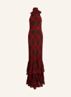 LAUREN RALPH LAUREN Abendkleid mit Volants: DUNKELROT / GELB / SCHWARZ