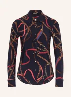 LAUREN RALPH LAUREN Hemdbluse aus Jersey: DUNKELBLAU / BRAUN / ROT
