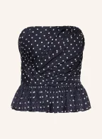 maje Off-Shoulder-Blusentop aus Satin: DUNKELBLAU / WEISS