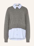 maje Pullover im Materialmix mit Schmucksteinen: DUNKELGRAU / HELLBLAU / WEISS
