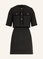 maje Set: Tweed-Kleid und Tweed-Jacke mit Glitzergarn und Schmucksteinen: SCHWARZ