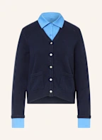 maje Strickjacke im Materialmix: DUNKELBLAU / HELLBLAU