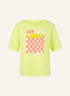 Das halbarm T-Shirt zeigt sich mit einem klassischem Rundhalsausschnitt und wir aus reiner Bio-Baumwolle gefertigt. Der vorne platzierte Print wird durch funkelnde Hot-Fix-Steine veredelt und setzt einen frischen Akzent im Stil von „Desert Fiesta“. Das Shirt trägt das Nachhaltigkeitslabel "Rethink Together".